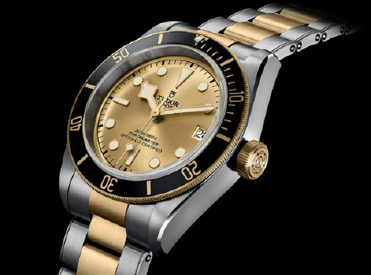 ▲表款沿袭了Black Bay系列的线条和比例,表圈、表冠以黄金打造而成。链带的中央链节也採用这种贵金属制作,隐隐呈现一股高贵气质。