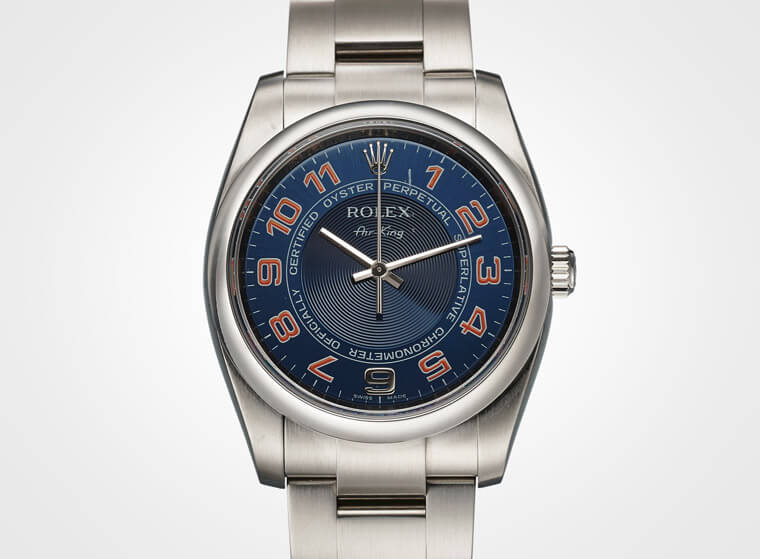 1980年代晚期以后Air-King逐渐发展成现代劳力士,机芯先是在1989年换装Cal. 3000,接着又在2001年升级到3130,外装除了陆续加入种种防偽配备,样式上也终于收敛到今天我们所熟悉的样子。