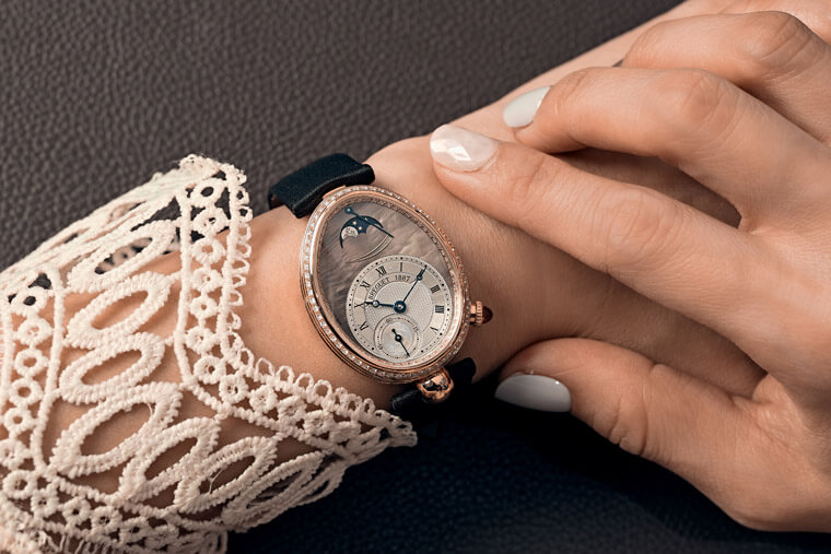 ▲Reine de Naples 8908融合镶钻工艺、珍珠母贝镶嵌以及机刻雕花等设计,交织出腕表出众而美感独具的第一印象。