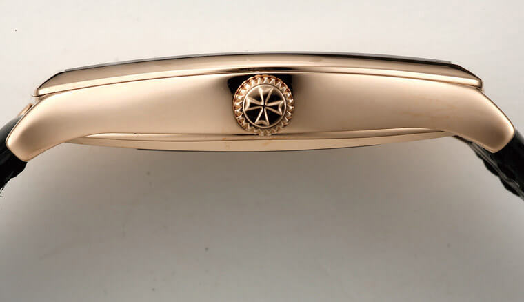 ▲有一说是新版马尔他的表壳从正面和侧面看都是酒桶型的,因为它的侧面也是中段较厚,上下两端较薄,同样形成一个梭形的线条,凡此都可以看出表款完全是从细部的比例变化取胜。