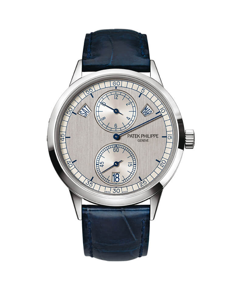 同时结合了百达翡丽于1996年发表的年历功能,在面盘上的三扇小窗即可分别显示星期、月份与日期,其专利年历装置可自动辨识大小月,一年只需于三月一日做一次调校,是非常方便且实用的复杂功能。百达翡丽运用硅技术发展出的全新基础机芯,重新诠释自航海年代以来的规范指针,堪称是融合过去与现代的精准指标。