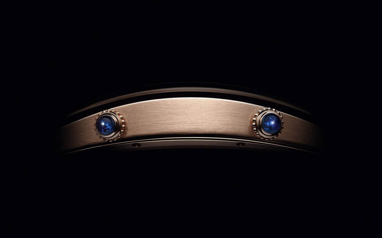 ▲看起来像是拥有两枚镶有蓝宝石的表冠,事实上一个是表冠,另一个装置则是按把。
