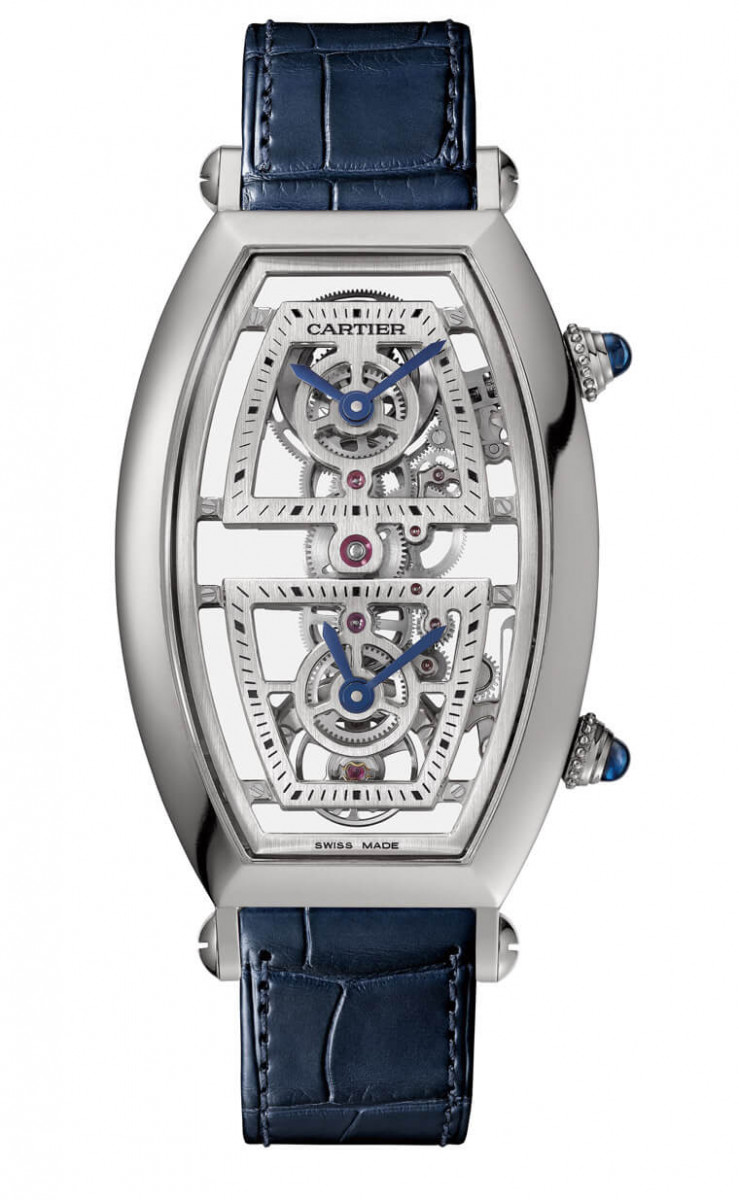 2019年卡地亚再次回溯经典,以设计艺术珍品的要求,为Tonneau腕表重新注入活力,在日内瓦表展上推出「Tonneau双时区镂空腕表」,展现出卡地亚的精湛技艺与创新精神。以拥有本地与第二时区时间的CPCP系列Tonneau XL双时区腕表为依归,让新作忠于原作。全新的双时区镂空腕表採用镂空设计则是它有别于原作的特色,赋予了这项非凡特质令美学工艺上更上一层楼,展现出卡地亚对自己作品的严格要求。