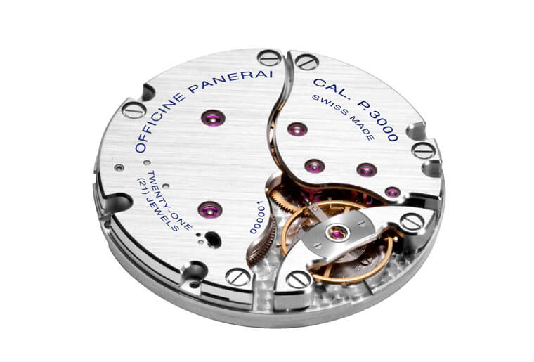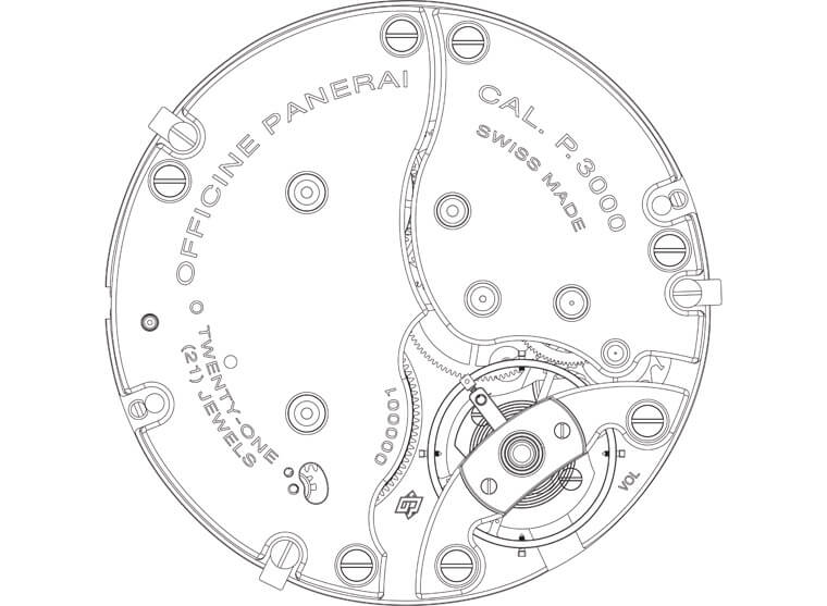 品牌近年来几乎年年都有一枚新机芯问世的策略,一块块补平自制机芯与通用机芯间的缺口,至于2011年沛纳海所推出的这枚P.3000手动上链机芯,尤其让人印象深刻。其直径达36.6mm,尺寸略小于P.2000系列、初问世时其属于小三针的配置,与通用的OP X、OP XI机芯倒是相当吻合,当年应该是针对ETA 6497而来的。在沛纳海的历史系列表款中,多半採用OP X与OP XI的通用机芯,且由ETA 6497与ETA 6497-2修改机芯板路而来,36.6mm的直径大小最初置于怀表之中,着眼其大小沛纳海以其表款尺寸需求成为主要的基础机芯。