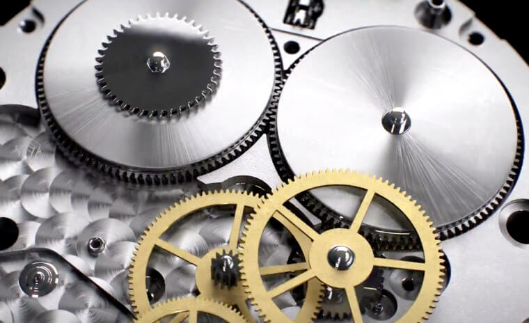 ▲机芯配有两个相连发条盒,此设计为修长纤幼的发条赋予3日动力储存,让发条能在更长时间内释放更加平均的动力。