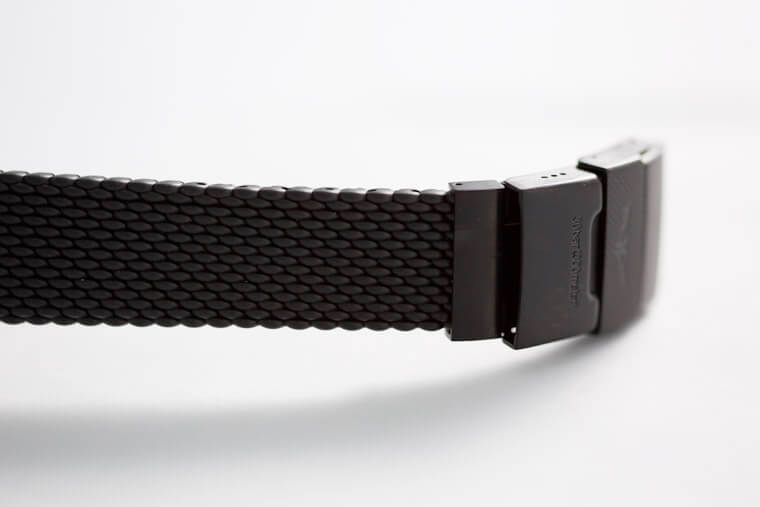 ▲不只换上黑色PVD表壳,表款的橡胶表带也採用类似米兰链带的编织纹路,让全黑的色调看起来不会过于单调普通。
