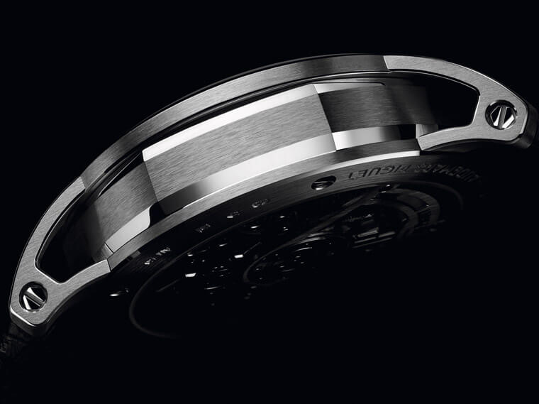 ▲介于表圈和表背之间的镂空表耳,以完美的线条衔接,光泽变化引人欣赏。