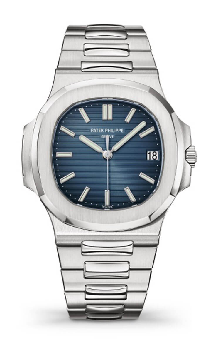 这款採用蓝面的Ref. 5711/1A经过立体的横条饰纹修饰后顿时富有活跃的层次感,而在日期显示部分,百达翡丽採用白底黑字的日期盘,与面盘的蓝色有所区隔,让佩戴者更易于读时,另外指针与时标表面都涂上了夜光物料,在昏暗的环境下也不会影响佩戴者判读,这也符合运动表的基本条件。