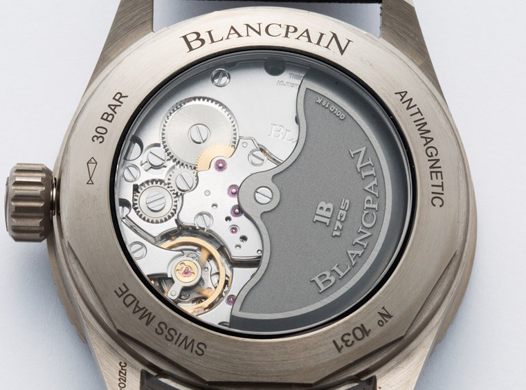 ▲1315机芯是宝珀首枚自制机芯13R0的自动版,虽然同样使用三发条盒,但动力只有五天,不像13R0是八日链(虽然五天也相当长了)。跟初期的版本相比,现行的1315改换了硅游丝,规格更高档。