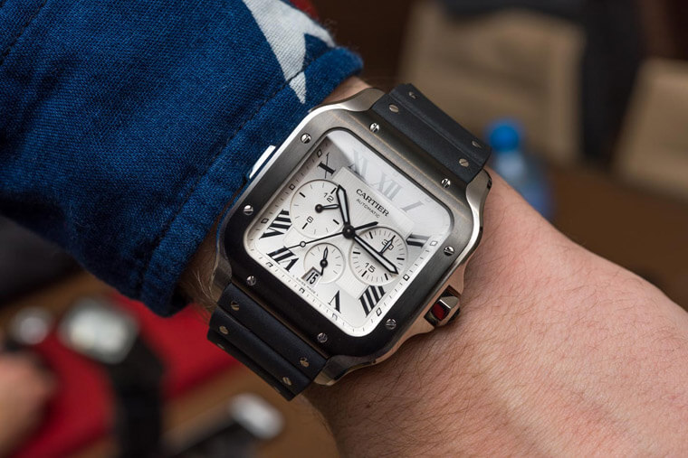 Santos计时码表价格大致和三针半金款的中型尺寸差不多,虽然单单就材质来看,计时码表会少了点华丽感,可是包括尺寸变大和功能进化也都是能够吸引人的诱因,卡地亚等于用计时款在三针款的三种材质之间分别补上了中间的价位落差,因此让市场获得更丰富的选择权。而近来相当流行的表带快拆系统刚好就是这个系列的拿手好戏,只要是卡地亚所推出规格一致的表带都随时可以用来替换,等于一只表可能衍生出超过三种以上的造型,不喜欢一成不变的人对这种设计会特别有好感。