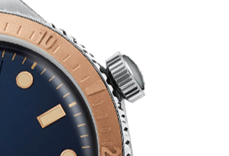 ▲表冠除了中段的止滑锯齿外,上下都做了球面的突起,功能性上这可以方便使用者带着手套操作,但另一方面这也算是复古款式的一个元素,但意外地是採用的品牌并不多。
