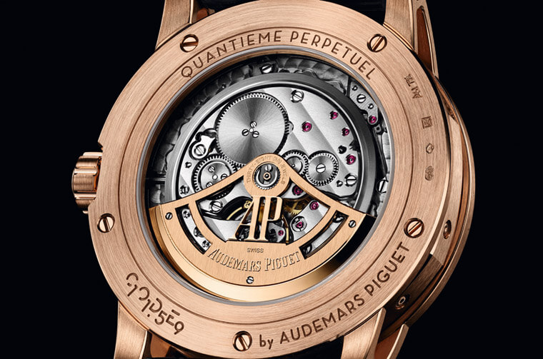 ▲表款搭载的5134机芯是在AP经典的2121自动机芯上加装万年历模组,透过底盖可以看到2121最具辨识度的辅助外轨式自动盘。这批搭载的新机芯都採用了更现代感的版路,相对地这款就仍然维持了古意。