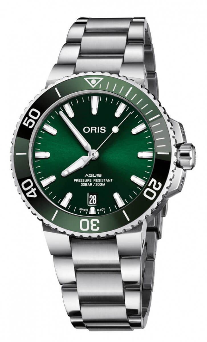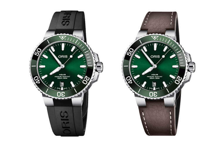 ▲ORIS Aquis潜水表首度推出搭配绿色陶瓷圈以及绿色面盘的39.5mm款式,对于不习惯大表径的人来说,这款新作的出现将有助于降低手表佩戴在手上的负担感。