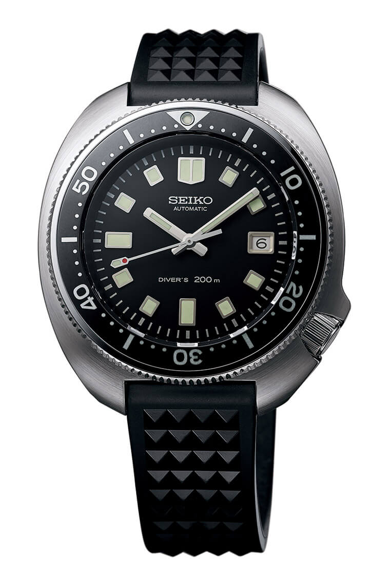 这款复刻的对象正确来说是6105-8110/9,它的前身是于1968年推出的6105-8000/9;过去我们在爬梳SEIKO潜水表历史的时候多半都是循着规格不断强化的脉络在走,1968年当时精工的潜水表已经做到防水300米的水准了,然而6105-8000/9却仍然维持着150米的防水深度,直承1965年的初代潜水表,甚至连面盘都长得很像(今回的复刻版加深到200米)。