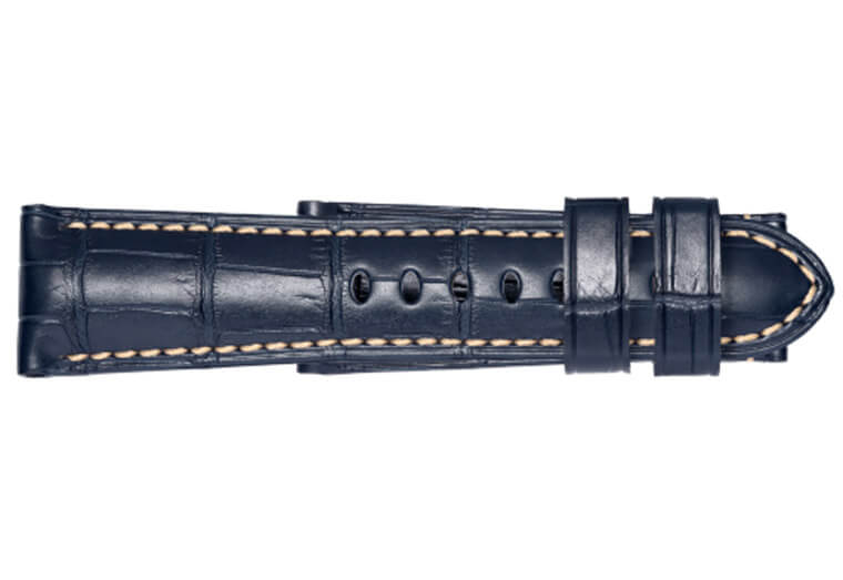 3. 鱷鱼皮(深蓝色皮面搭米黄色缝线)26/22.0mm。参考价:NT$ 12,000