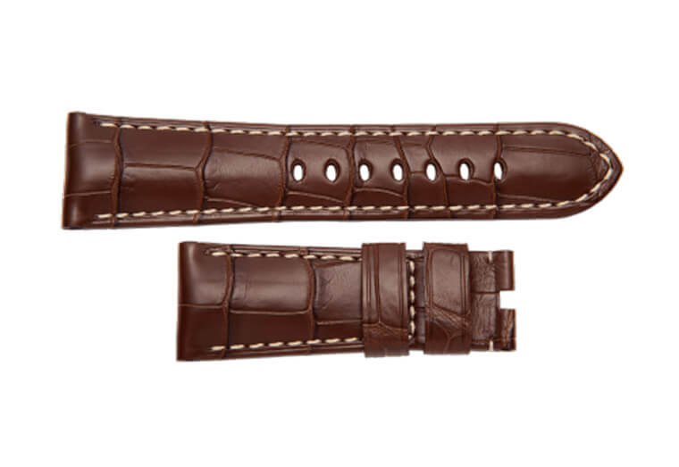 8. 鱷鱼皮(仿古棕色皮面搭淡褐色缝线)26/22.0mm。参考价:NT$ 12,000
