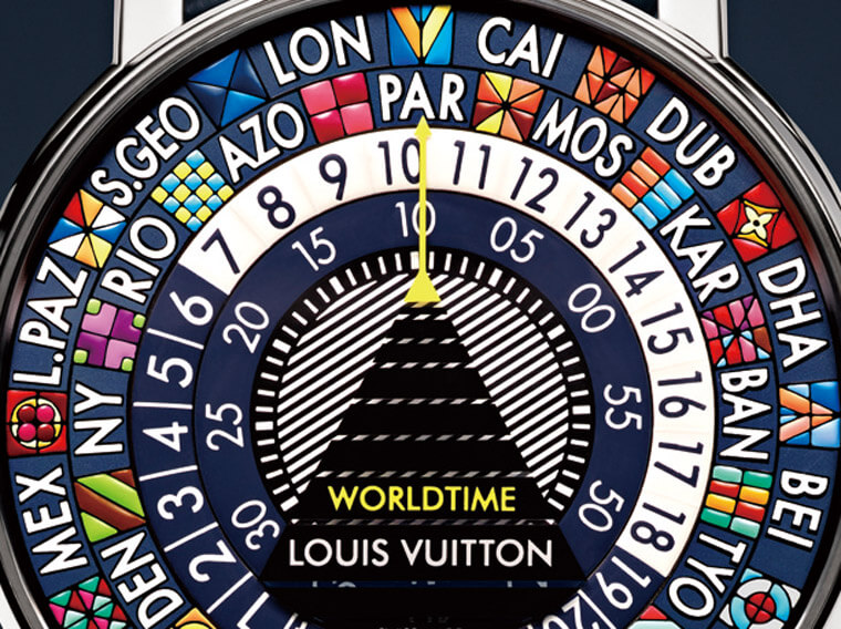 世界时区虽然是一种进阶的复杂功能,但是表坛上推出此类作品的品牌并不算少数,不过综观市面上多数的世界时区腕表,大致上不脱採用时、分显示搭配面盘外圈的24小时环以及时区城市环这种比较传统的设计类型,这种显时方式的好处在于直觉易辨,一眼就能看出不同地区当前的时刻,不过换个角度来看,这样的设计也成为了一种保险而不容易出错的形式,久而久之市场也习惯了这种主流创意,反而失去了也许还有其他诠释方式的创意表现机会,直到路易威登开创出Escale Worldtime后,我们才惊觉原来世界时间功能还有这样的发展潜能。