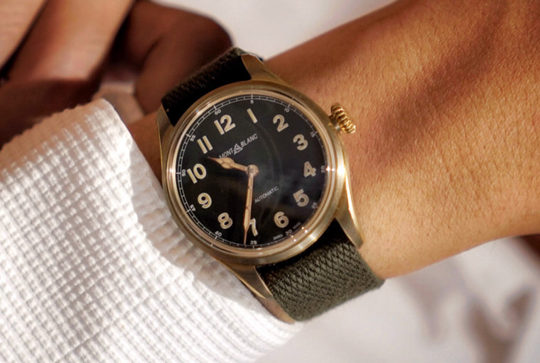 表款面盘上的重要元素例如时标字体、教堂式指针、米色SuperLumiNova®夜光涂料以及早期的万宝龙Logo等都很具体地捕捉到复古设计精髓,此外万宝龙还与法国百年编织厂合作制作绿色编织NATO表带,舒适坚韧的表带让人长时间佩戴腕表也不觉负担沉重,这种表带很符合1858系列2019年强调户外探险的特质,佩戴在手上比较不怕流汗或碰触水分,在运动表当道的今日特别讨喜。