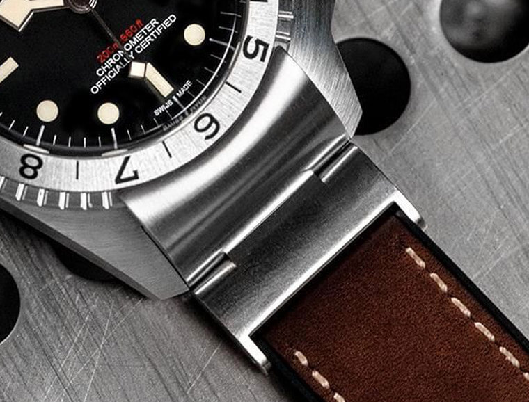 ▲表带跟表耳之间追加了一段链节,这裡一方面可能跟它的表圈锁定机构有关,另一方面那也是当时流行的样式。表带是皮革内衬橡胶,这是帝舵第一次採用这种复合式结构,接下来也许会普及到其他款式。