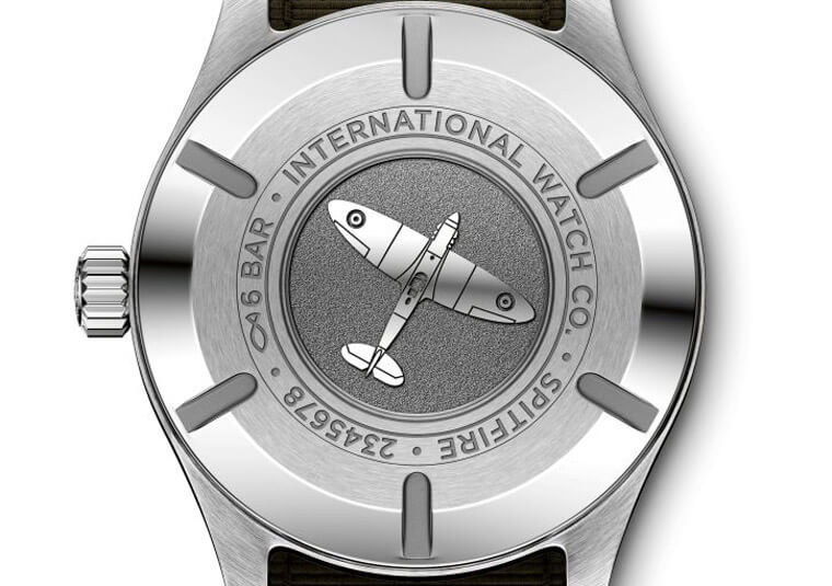 ▲实底盖上鐫刻了喷火战机的图案,内部则有软铁内壳包覆32110机芯,提升机芯的抗磁效果。