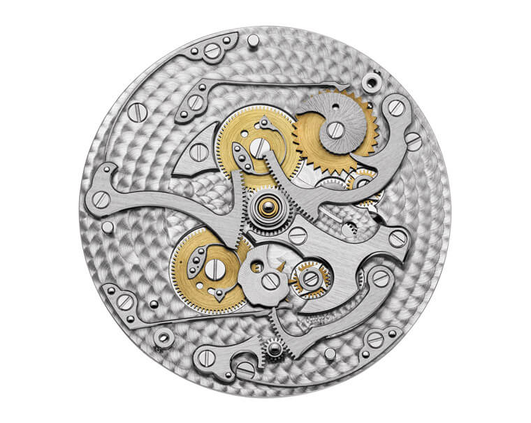 ▲从面盘侧的机芯图一眼就可以看到两组逆跳机构,比较特别的是它的两组逆跳各自都具备了一左一右两枚弧形的齿条,一枚连结到蜗型轮制动逆跳的时机,一枚连结到弹力弓提供逆跳的力道,比一般的设计细腻。
