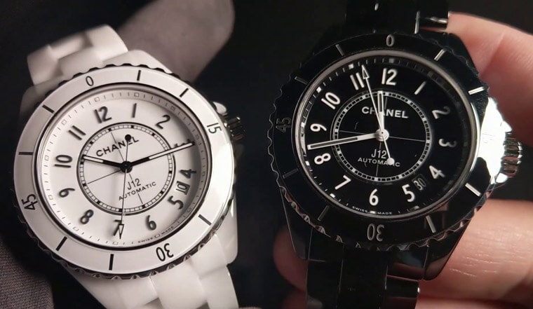 ▲J12手表时针与分针调整为同等宽度,时标改用高科技陶瓷材质打造,就连字型也统一成香奈儿标准字体,看起来耳目一新。