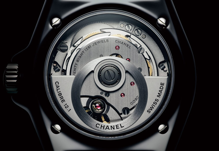 ▲新版J12少见採用透明底盖,并搭载品牌全新研发的12.1机芯,动力储存一举提升到70小时水准。