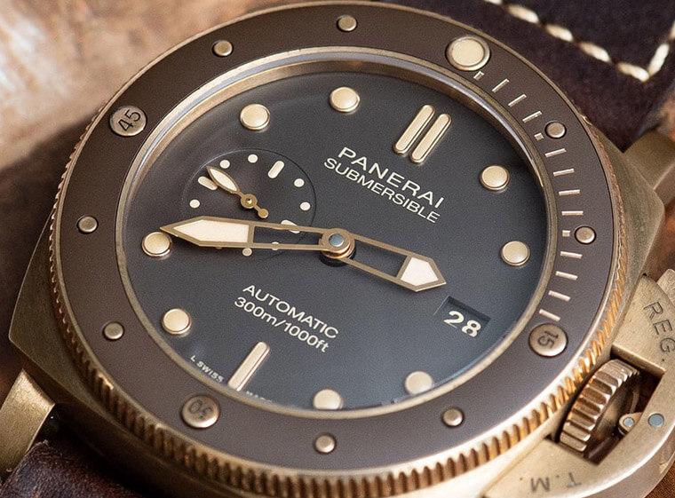 ▲PAM00968外观还是招牌的Luminor样式,不过这次它有两点有别于过往的沛纳海青铜表,一是首度导入陶瓷表圈,再来它所採用的咖啡色面盘,也是继绿面和蓝面之后,沛纳海青铜表最新出现的选项。图片:watchonista.com