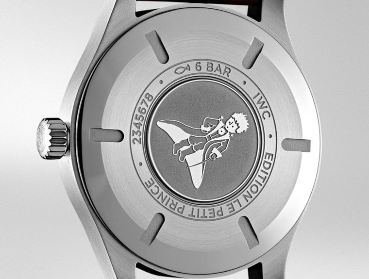 ▲为了突显特别版的渊源,IWC特地手表背面的容克斯JU-52运输机(Junkers JU-52)图案改为小王子图像。
