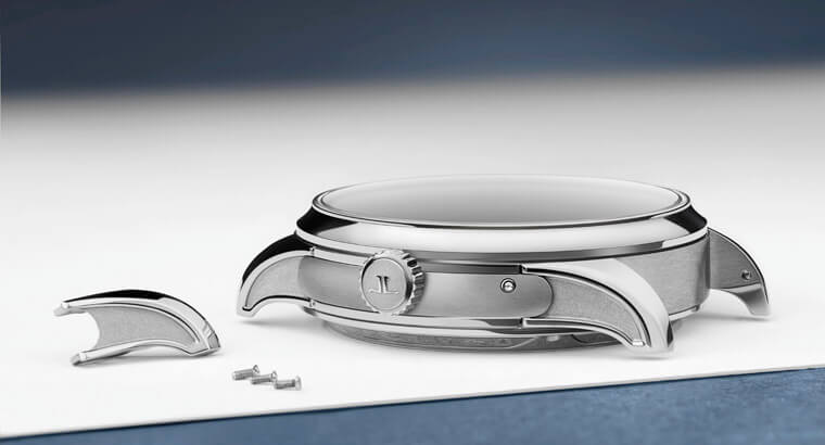 超卓传统三问大师系列万年历腕表同样展现出协调的力量与美感于外观造型部分,表壳经过全新设计,共由80枚零件组成。由于高复杂功能过往常常给人厚重、佩戴负担感较重的印象,因此积家特别留意表壳的人体工学设计,例如突出的表圈、表耳上的宽阔斜边,乃至线条流畅、逐渐收窄的三问报时滑桿等,外部零件也均经过交替拋光、缎面打磨或喷砂处理,塑造出丰富的视觉层次。此外这款腕表备有两款面盘选择,其中一款为新古典主义风格的银色粒纹面盘,另一款则是覆有深蓝色半透明珐琅的扭索饰纹面盘,后者面盘的珐琅经过拋光处理,形成宛如琉璃般的闪烁蓝色效果,能随着光线和角度展现不同美态,与三问的听觉效果,共同组成一场丰富的感官饗宴。