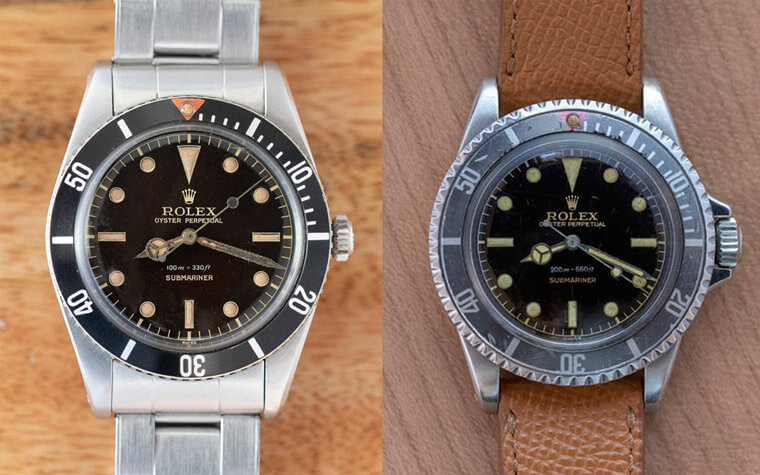 ▲图左为水鬼5508、图右为水鬼5512,两相对照可见表冠护肩是它们外观上比较明显的差异。图片hodinkee.com