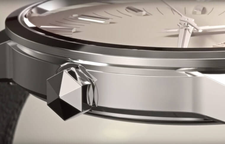 0100在操作面也做了一些强调正确性的设计,比如说它装置了一枚四番车停止槓桿,作用是在表冠拉出准备进行调校时会自动让秒针对准刻度,由此做到精密调校(这裡的停止槓桿也是由LIGA制成的),另外它还具备了时针独立调校系统,这样即便时区切换过了秒针仍旧得以持续它年差±1秒的精度。2019年量产的手表隶属于The CITIZEN这条高阶产品线,包括表耳、表冠、指针及时标造型都导入了水晶的六角意象,概念相当饱满。