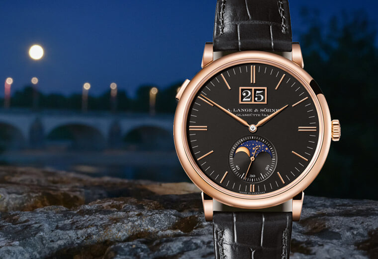 ▲SAXONIA系列的特徵表现在典雅纤细的棒状时标上,同时此系列的功能从基本到复杂的变化也很丰富,如SAXONIA MOON PHASE便具备了月相与大日期两项足以代表朗格制表工艺精华的显时机制。