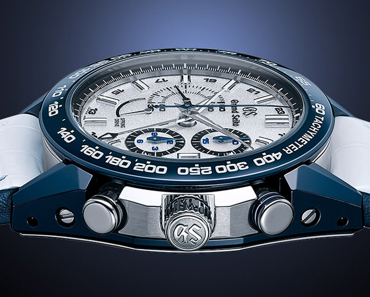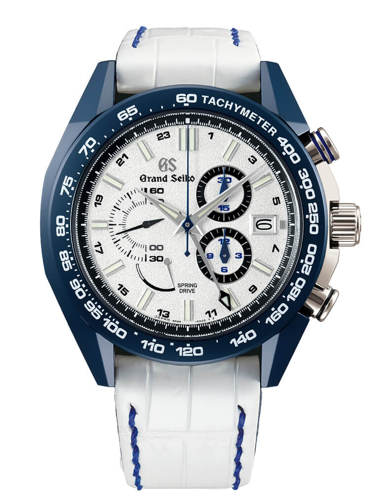 ▲Spring Drive的计时码表并非首度採用测速刻度表圈,但用在陶瓷运动款上却是第一次;同系列过去出过黑色和蓝色的陶瓷外壳,其中蓝陶瓷是用在机械款式上,搭配SD机芯这也是到了这款首见。
