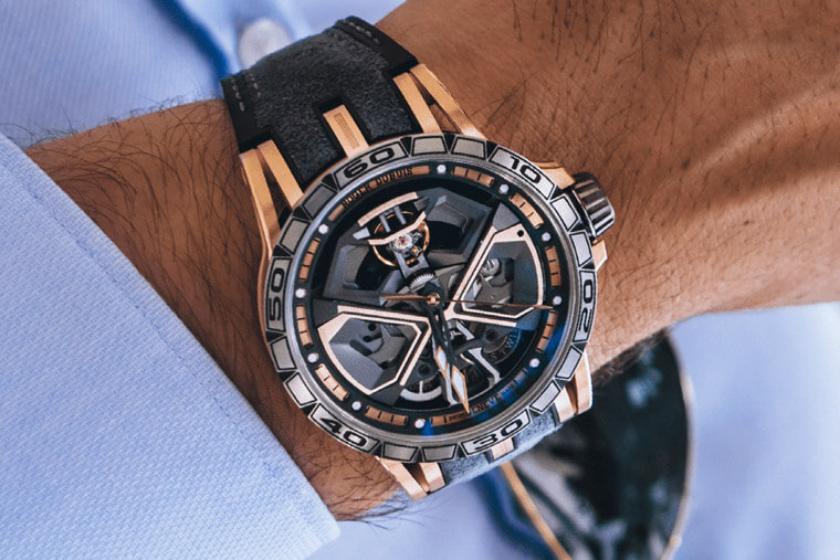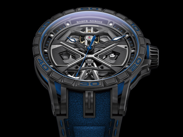 ▲罗杰杜彼从2017年开始推出蓝宝坚尼联名款后,近两年持续围绕此一超跑品牌打造表作,不光是表款造型参考超跑元素,其材质、配色也很有超跑风格。