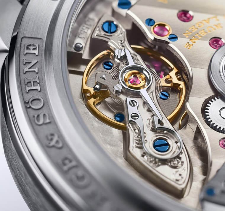 ▲考量到机芯的运动属性,L155改採横跨式的摆轮表桥来强化稳定性,这在朗格的机芯中极其罕见。