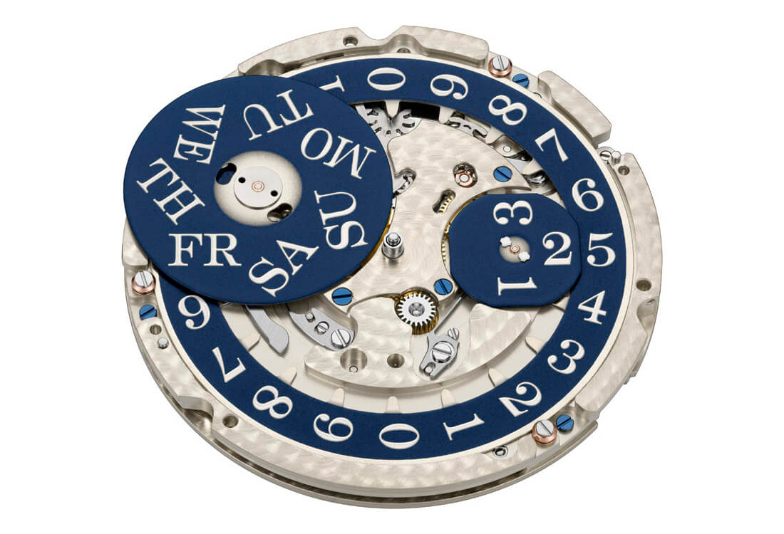单纯谈论表款的话,Odysseus有点像是装了链带的Saxonia,并且在表冠上下生出了一对角型的按把,用以操作快调面盘上左右对称的星期和日期显示。从机能性的角度着眼,这裡包括大视窗的星期、3点钟位置大日期以及双快调按把都是朗格过去没有的,这表示了在表壳内部搭载了一枚全新的机芯。
