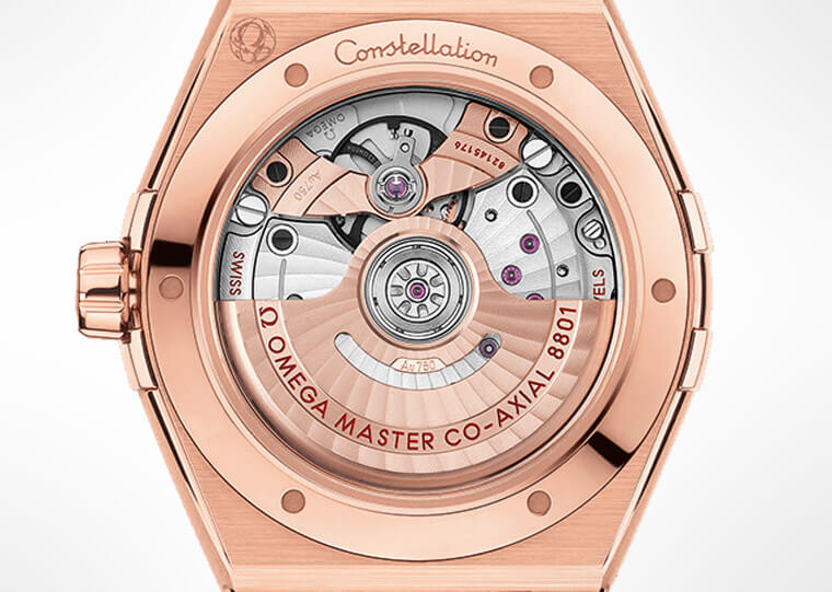 表款搭载的8801机芯具有Sedna™金自动盘呼应表壳的贵金属材质,就连摆轮表桥也一样用上了这种欧米茄独门的贵金属合金,透过透明底盖看起来别有一种尊荣感,机芯除了採用另一项品牌专利技术的同轴擒纵设计之外,它还同样是通过大师天文台认证的机芯,也就是抗磁能力比一般机芯高出一截,走时精准度也维持和COSC认证一样(-4~+6)甚至更准的程度,品质和机芯本身的用料都符合它的定价,至于机芯的动力储存55小时不算特别出色但也超过了两天,不需三不五时就要靠自己手动上链,便利性也是足够的。