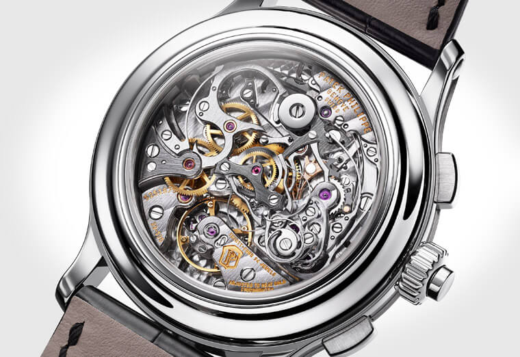 5370搭载Cal. CHR 29-535 PS,也是CH 29系机芯的第一只追针计时码表。双导柱轮、稳定的水平离合、手动上链,无不符合表迷对一只顶级手表的期许;此外如离合轮的专利齿形、红宝石轴承中的自调锤、带凹槽的积分凸轮以及新设计的追针轮隔离器等等创新技术,各自有助于提高动力传输效率、减少磨损或是提升同步;在百达翡丽印记规范下,机芯的日差在+2~-3秒之内,超越C.O.S.C.天文台认证。