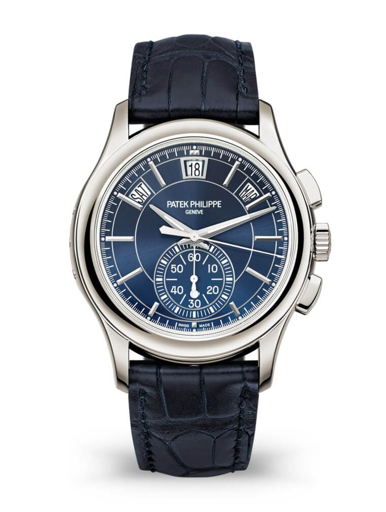 提到PP的年历计时码表许多人会想到5960,不过百达翡丽曾经推出钢版的5960/1A,并宣布停产该系列的贵金属款式,一度使其年历计时码表的价位级距跟着下修,直到5960/01G取代5960/1A后才使得这个相对亲切的入门级距走入历史;但在5960/01G推出前,期间百达翡丽就已经发表过5905P,这款的出现犹如补上当时高价位年历计时码表的空位,目前5905P和5960/01G并存,如此也更能扩增市场的选择空间。