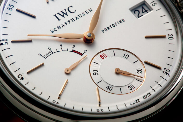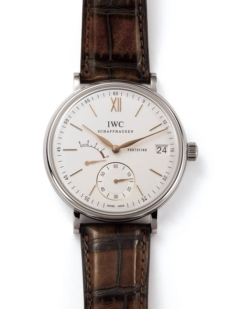 表款的改款亮点例如十二点钟的时标也从棒状改成了罗马数字,另外外圈的刻度每5分钟还标示了分钟数。而为了配合IWC自制机芯的大尺寸,表径也放大到Portofino当时还很少见的45mm。这次改款还加粗了表耳,让Portofino原本略显单薄的表耳看起来丰满些;表带是新Portofino的另一个卖点,系列新版的表带都是由义大利皮鞋名厂SANTONI所提供,表皮由手工染制,肌理处的顏色还会更深,质感非常独特。