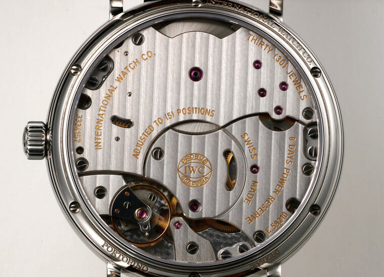 回头看看表款,这枚59210简单地说就是IWC 50000系七日链机芯的手上链版,不过实际上二者的差别却不仅止于此。50000系名为七日链,实际上的动力储存却有八日,少报一日是为了避免使用者拖到动力用完了才去上链。59210的情形则是把九日报成八日;手上链机芯本来就比自动机芯更需要长动力储存,为此IWC加大了59210的发条盒,而且还设计了一套恆定动力系统,让输出的动力能在头八天维持在稳定的高原期,到了第九天就直接切断动力,让机芯不动则已,一旦有在作动就会有安定的表现。