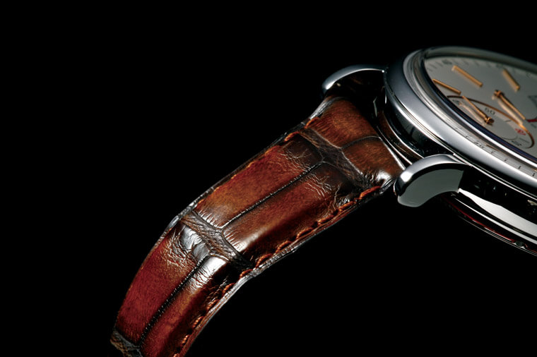 ▲表带是新Portofino的另一个卖点,系列表带是由义大利皮鞋名厂SANTONI所提供的,表皮由手工染制,肌理处的顏色还会更深,非常独特。