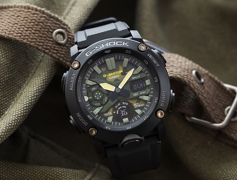 此系列中的GA-2000SU-1A和GA-2000SU-2A分別以綠、藍迷彩圖案點綴魚黑色與藍色錶殼的面盤上,錶款的圓形錶圈上鎖入四枚固定螺絲,錶殼蘊含碳纖維材質讓手錶戴起來相對輕盈一些,而錶款面盤結合指針和數位顯示,佩戴者可以操作世界時間、計時碼錶、倒數計時、鬧鈴等不同功能,其51.2mm的大錶徑佩戴在手上顯得相當粗獷而有男人味。