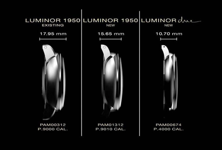 ▲IG上有人列出Luminor系列和Luminor Due系列等錶殼的厚度差異比較。Source:Instagram