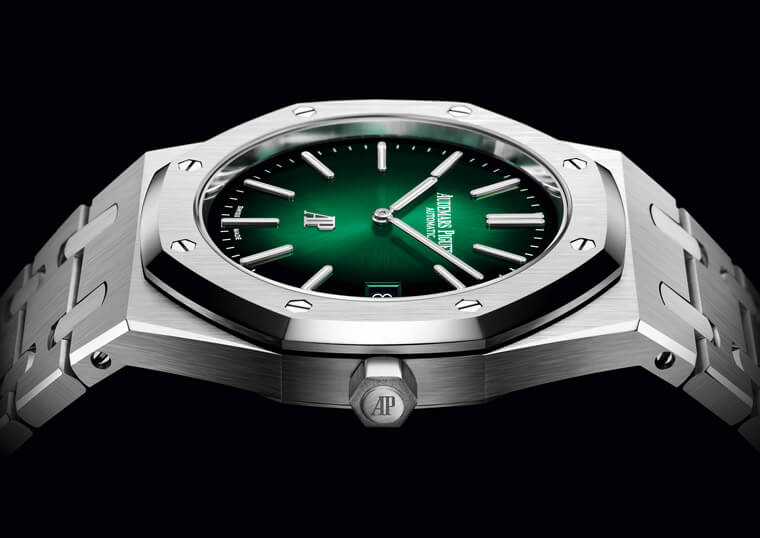 2021年AUDEMARS PIGUET愛彼讓人耳目一新地推出不少綠色面盤新作,包括皇家橡樹系列或是皇家橡樹離岸型都不約而同有綠面款問世。AP近年對手錶面盤顏色原本就抱著比較開放的態度,例如前幾年ROO潛水錶就曾出現一些螢光色系的面盤,又如皇家橡樹系列前陣子也陸續出過紫色或淺藍色等跳脫傳統面盤色系的嘗試,因此2021年AP這批綠面大軍登場,說意外好像也不太意外,雖然我們不清楚品牌啟用綠色面盤的動機或想法為何,但現在市場的確是愈來愈流行綠面錶無誤;從兩三年前開始,不少品牌就先後推出綠面款式,到了2021年綠面更是呈現大爆發的狀態,因此愛彼順應時代潮流發表綠色面盤款式,一來能與時俱進迎合市場的喜好,二來也替手錶增添新意,同時也可以開創話題性,對品牌來說益處不少。本次便來認識一下愛彼這批綠面大軍裡的皇家橡樹”Jumbo”超薄錶。