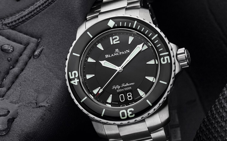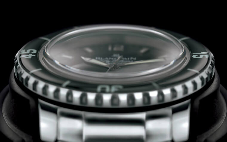 潛水錶界有一些歷史悠久的經典款,像是勞力士水鬼、歐米茄海馬等等,在這些知名作品中,BLANCPAIN寶珀的五十噚系列擁有一個相當具有辨識度的特色,那就是藍寶石水晶錶圈,有別於其他潛水錶要嘛採用與錶殼相同的金屬或是鋁材質,又或者比較現代的陶瓷材質等,寶珀五十噚從很早期就奠定使用藍寶石錶圈這樣的少見設計,後續並在系列的現代復刻版本中持續沿用,目前提到採用藍寶石錶圈的潛水錶,五十噚往往會是多數人率先想到的主要代表作。