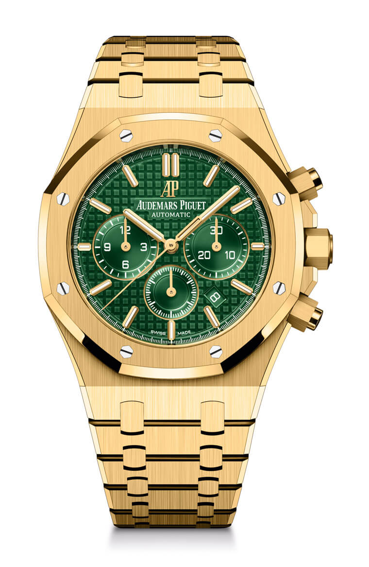 ▲皇家橡樹系列計時碼錶採用黃金錶殼的作品原本只有一款41mm的藍面,不過2021年愛彼新增綠面後(一樣是41mm),將有助於推動黃金殼吸引市場目光。