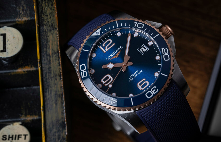 LONGINRS浪琴表的HydroConquest深海征服者因為不錯的品質、與勞力士水鬼略微神似的造型而博得了浪鬼的美名,是不少人入門機械錶時公認的優質之作。2021年浪鬼繼不鏽鋼款和黑陶瓷款後迎來不鏽鋼與玫瑰金/黃金PVD雙色版本,讓系列款式更趨齊全。HydroConquest系列中的綠、黑與藍面錶款此次提供不鏽鋼搭配黃金PVD雙色版本;而灰、黑與藍色錶款則提供不鏽鋼搭配玫瑰金PVD雙色版本,手錶可選擇搭配與面盤同色的橡膠錶帶或雙色鍊帶。