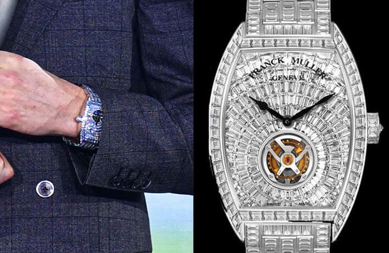 ▲放大點看原來C羅再次佩戴FRANCK MULLER的Cintrée陀飛輪訂製款,手錶上鑲滿600顆以上的矩形切割鑽石,要價超過150萬美金。Source:Time News